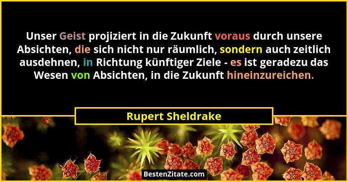 Unser Geist projiziert in die Zukunft voraus durch unsere Absichten, die sich nicht nur räumlich, sondern auch zeitlich ausdehnen, in Richtung künftiger Ziele - es ist geradezu das Wesen von Absichten, in die Zukunft hineinzureichen.