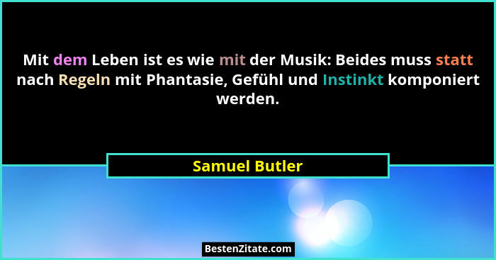 Mit dem Leben ist es wie mit der Musik: Beides muss statt nach Regeln mit Phantasie, Gefühl und Instinkt komponiert werden.