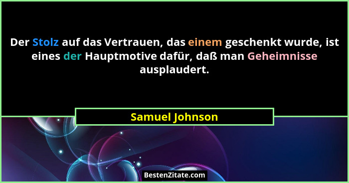 Der Stolz auf das Vertrauen, das einem geschenkt wurde, ist eines der Hauptmotive dafür, daß man Geheimnisse ausplaudert.