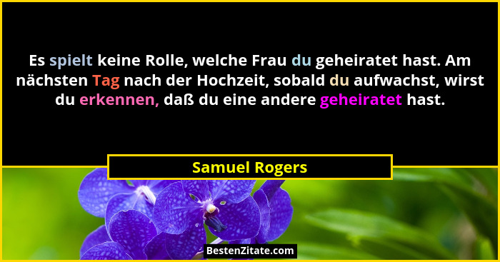 Es spielt keine Rolle, welche Frau du geheiratet hast. Am nächsten Tag nach der Hochzeit, sobald du aufwachst, wirst du erkennen, daß du eine andere geheiratet hast.