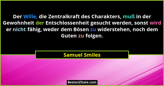 Der Wille, die Zentralkraft des Charakters, muß in der Gewohnheit der Entschlossenheit gesucht werden, sonst wird er nicht fähig, weder dem Bösen zu widerstehen, noch dem Guten zu folgen.