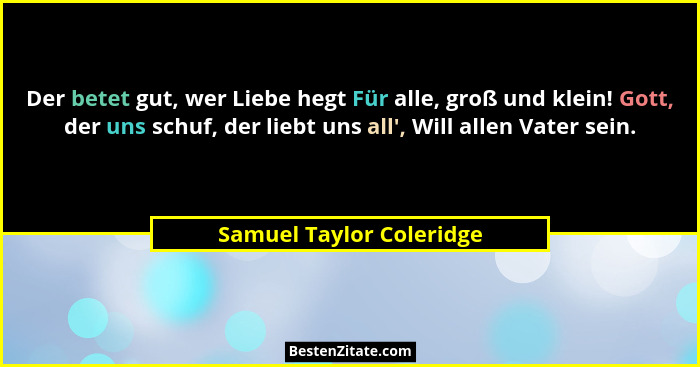 Der betet gut, wer Liebe hegt Für alle, groß und klein! Gott, der uns schuf, der liebt uns all', Will allen Vater sein.