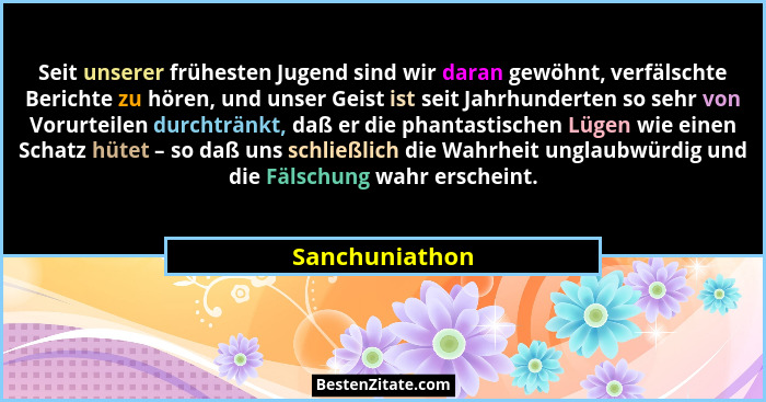 Seit unserer frühesten Jugend sind wir daran gewöhnt, verfälschte Berichte zu hören, und unser Geist ist seit Jahrhunderten so sehr von Vorurteilen durchtränkt, daß er die phantastischen Lügen wie einen Schatz hütet – so daß uns schließlich die Wahrheit unglaubwürdig und die Fälschung wahr erscheint.