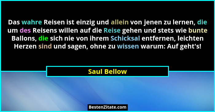 Das wahre Reisen ist einzig und allein von jenen zu lernen, die um des Reisens willen auf die Reise gehen und stets wie bunte Ballons, die sich nie von ihrem Schicksal entfernen, leichten Herzen sind und sagen, ohne zu wissen warum: Auf geht's!
