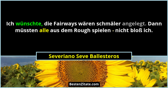 Ich wünschte, die Fairways wären schmäler angelegt. Dann müssten alle aus dem Rough spielen - nicht bloß ich.