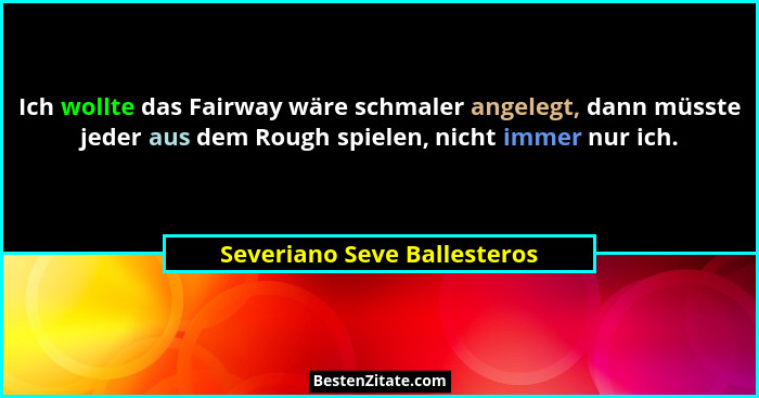 Ich wollte das Fairway wäre schmaler angelegt, dann müsste jeder aus dem Rough spielen, nicht immer nur ich.