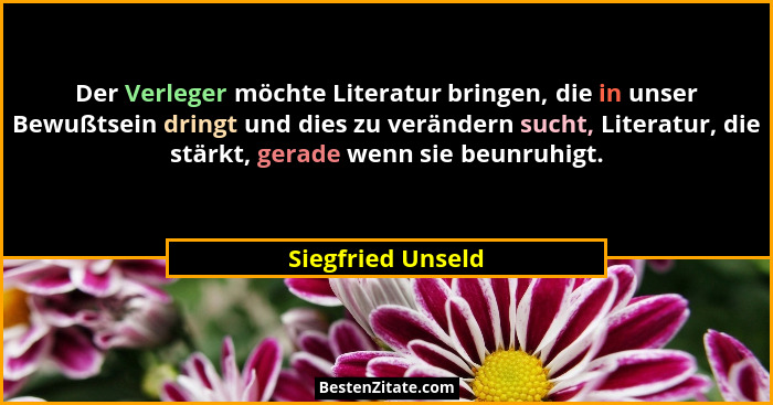 Der Verleger möchte Literatur bringen, die in unser Bewußtsein dringt und dies zu verändern sucht, Literatur, die stärkt, gerade wenn sie beunruhigt.