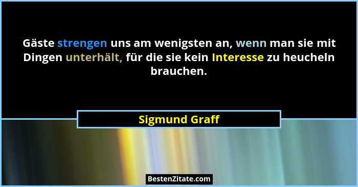 Gäste strengen uns am wenigsten an, wenn man sie mit Dingen unterhält, für die sie kein Interesse zu heucheln brauchen.