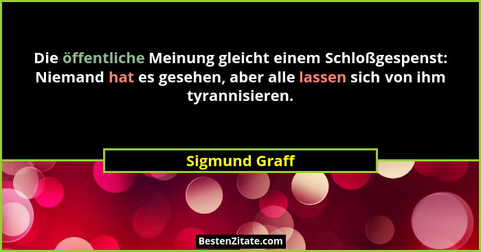 Die öffentliche Meinung gleicht einem Schloßgespenst: Niemand hat es gesehen, aber alle lassen sich von ihm tyrannisieren.