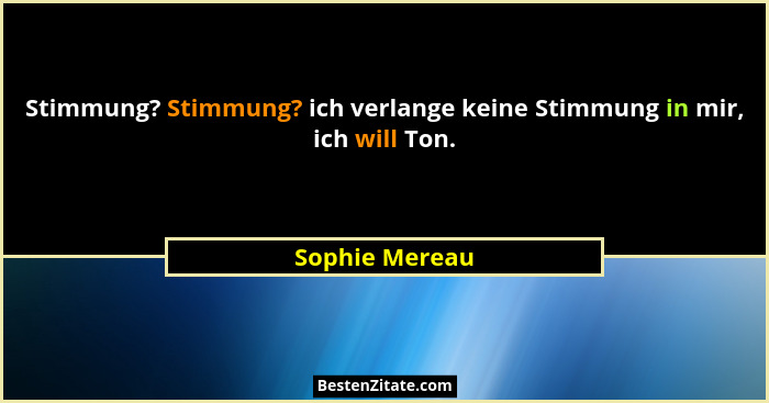 Stimmung? Stimmung? ich verlange keine Stimmung in mir, ich will Ton.
