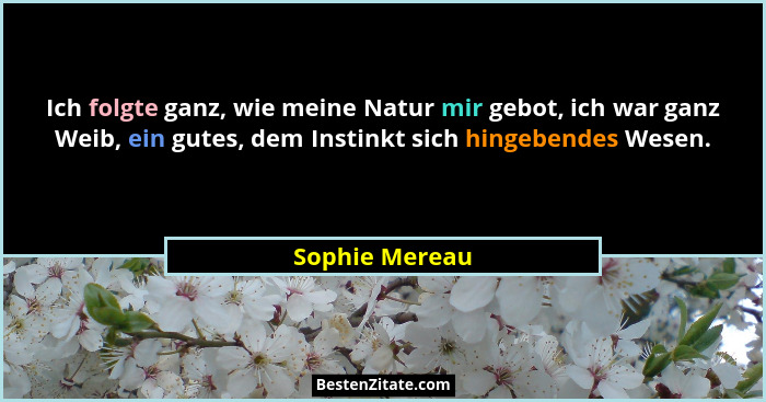 Ich folgte ganz, wie meine Natur mir gebot, ich war ganz Weib, ein gutes, dem Instinkt sich hingebendes Wesen.