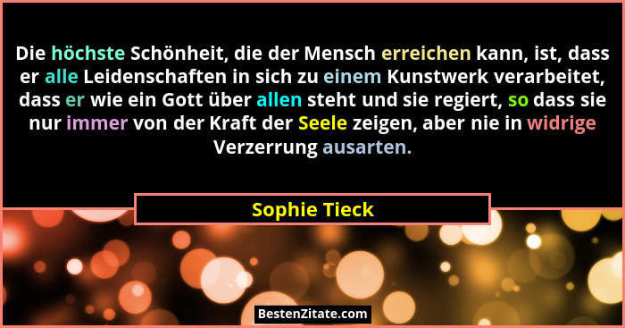 Die höchste Schönheit, die der Mensch erreichen kann, ist, dass er alle Leidenschaften in sich zu einem Kunstwerk verarbeitet, dass er wie ein Gott über allen steht und sie regiert, so dass sie nur immer von der Kraft der Seele zeigen, aber nie in widrige Verzerrung ausarten.