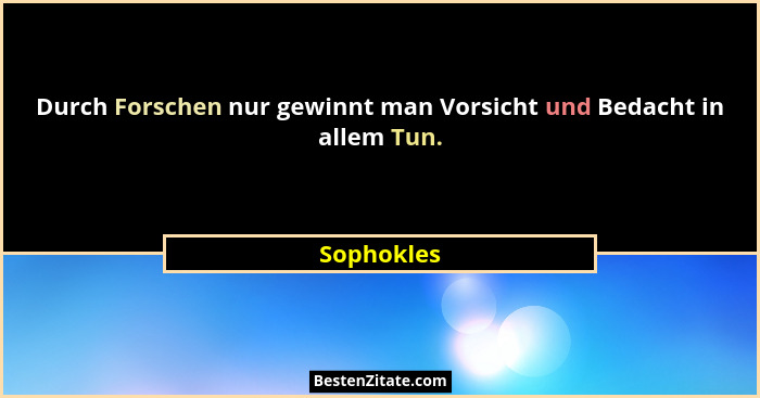 Durch Forschen nur gewinnt man Vorsicht und Bedacht in allem Tun.