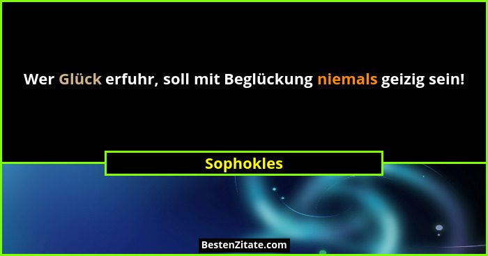 Wer Glück erfuhr, soll mit Beglückung niemals geizig sein!
