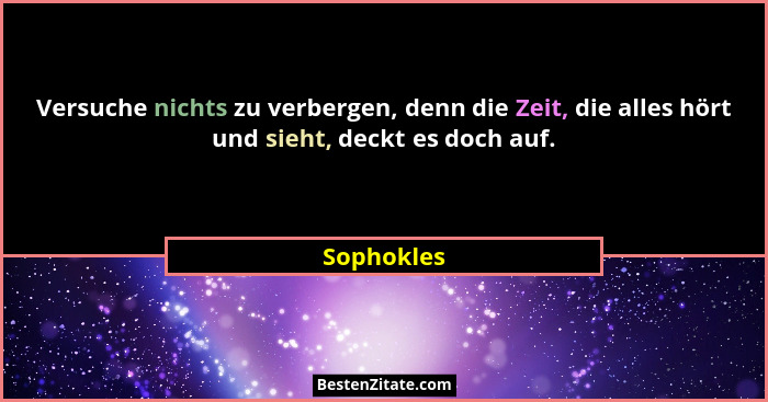 Versuche nichts zu verbergen, denn die Zeit, die alles hört und sieht, deckt es doch auf.