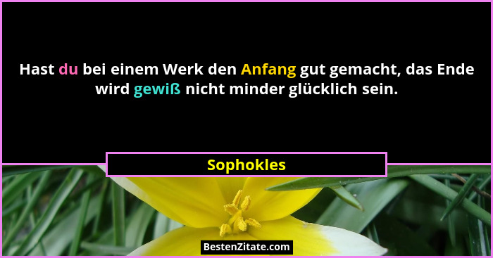 Hast du bei einem Werk den Anfang gut gemacht, das Ende wird gewiß nicht minder glücklich sein.