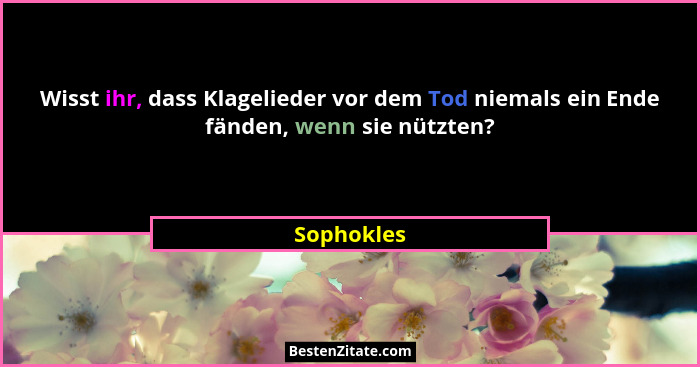 Wisst ihr, dass Klagelieder vor dem Tod niemals ein Ende fänden, wenn sie nützten?