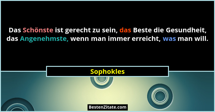 Das Schönste ist gerecht zu sein, das Beste die Gesundheit, das Angenehmste, wenn man immer erreicht, was man will.
