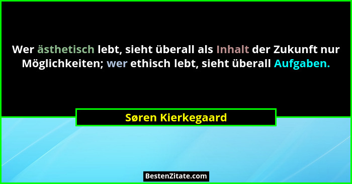 Wer ästhetisch lebt, sieht überall als Inhalt der Zukunft nur Möglichkeiten; wer ethisch lebt, sieht überall Aufgaben.