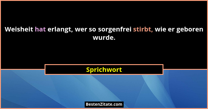Weisheit hat erlangt, wer so sorgenfrei stirbt, wie er geboren wurde.