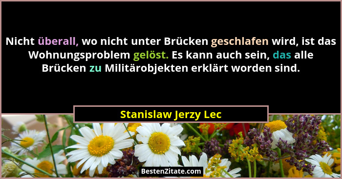 Nicht überall, wo nicht unter Brücken geschlafen wird, ist das Wohnungsproblem gelöst. Es kann auch sein, das alle Brücken zu Militärobjekten erklärt worden sind.
