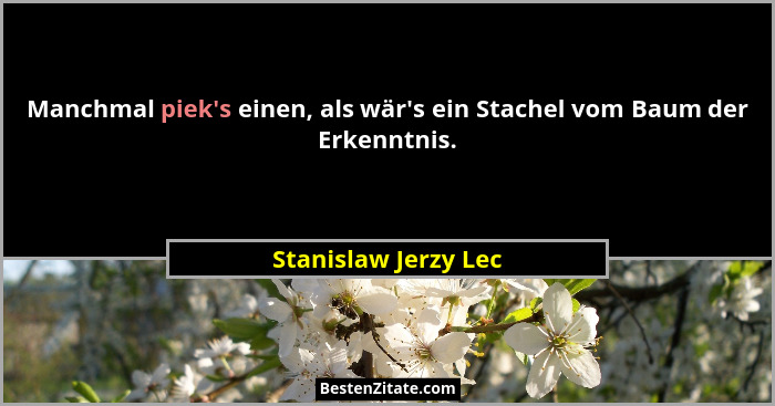Manchmal piek's einen, als wär's ein Stachel vom Baum der Erkenntnis.