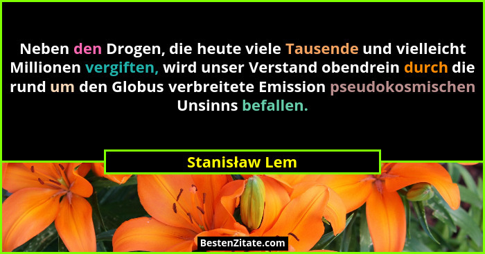 Neben den Drogen, die heute viele Tausende und vielleicht Millionen vergiften, wird unser Verstand obendrein durch die rund um den Globus verbreitete Emission pseudokosmischen Unsinns befallen.