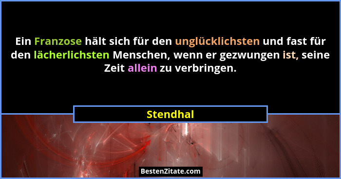 Ein Franzose hält sich für den unglücklichsten und fast für den lächerlichsten Menschen, wenn er gezwungen ist, seine Zeit allein zu verbringen.