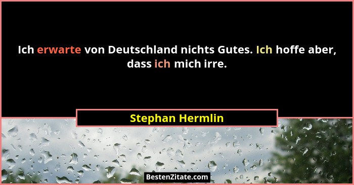 Ich erwarte von Deutschland nichts Gutes. Ich hoffe aber, dass ich mich irre.