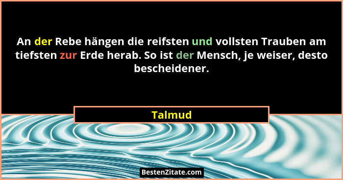 An der Rebe hängen die reifsten und vollsten Trauben am tiefsten zur Erde herab. So ist der Mensch, je weiser, desto bescheidener.