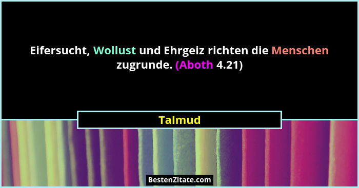 Eifersucht, Wollust und Ehrgeiz richten die Menschen zugrunde. (Aboth 4.21)