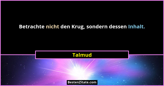 Betrachte nicht den Krug, sondern dessen Inhalt.