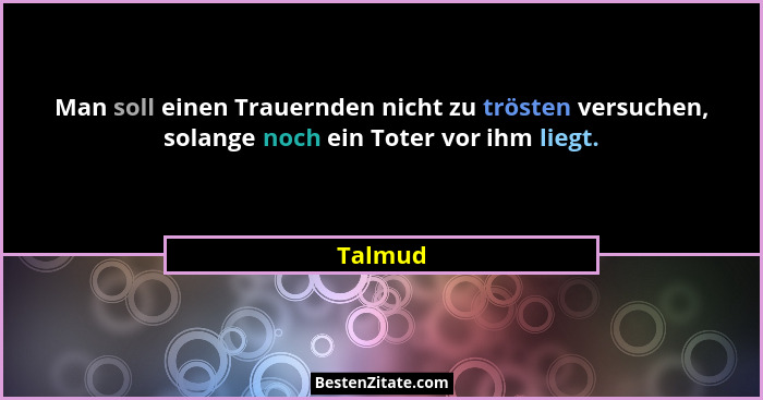 Man soll einen Trauernden nicht zu trösten versuchen, solange noch ein Toter vor ihm liegt.