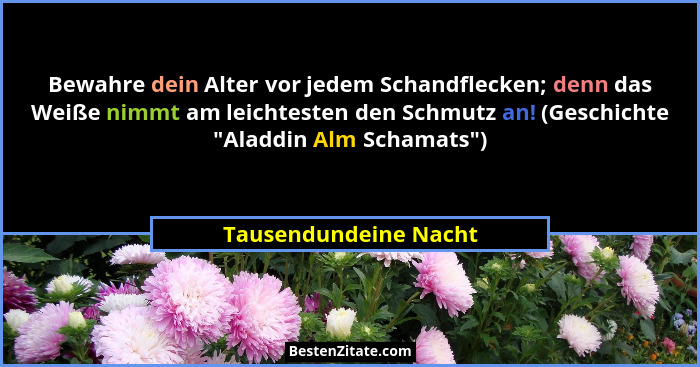 Bewahre dein Alter vor jedem Schandflecken; denn das Weiße nimmt am leichtesten den Schmutz an! (Geschichte "Aladdin Alm Schamats")