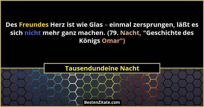 Des Freundes Herz ist wie Glas – einmal zersprungen, läßt es sich nicht mehr ganz machen. (79. Nacht, "Geschichte des Königs Omar")