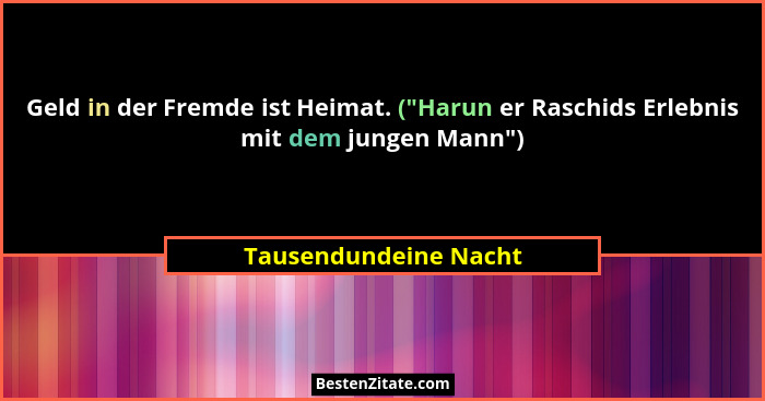 Geld in der Fremde ist Heimat. ("Harun er Raschids Erlebnis mit dem jungen Mann")