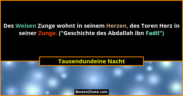 Des Weisen Zunge wohnt in seinem Herzen, des Toren Herz in seiner Zunge. ("Geschichte des Abdallah ibn Fadil")