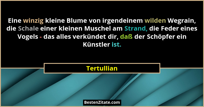 Eine winzig kleine Blume von irgendeinem wilden Wegrain, die Schale einer kleinen Muschel am Strand, die Feder eines Vogels - das alles verkündet dir, daß der Schöpfer ein Künstler ist.