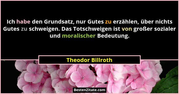 Ich habe den Grundsatz, nur Gutes zu erzählen, über nichts Gutes zu schweigen. Das Totschweigen ist von großer sozialer und moralischer Bedeutung.