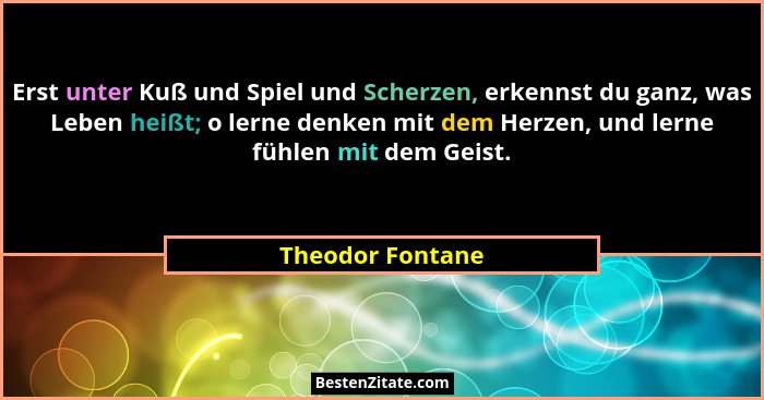 Erst unter Kuß und Spiel und Scherzen, erkennst du ganz, was Leben heißt; o lerne denken mit dem Herzen, und lerne fühlen mit dem Geist.