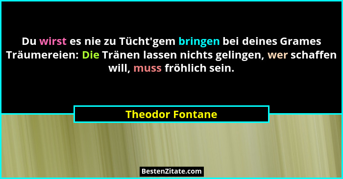Du wirst es nie zu Tücht'gem bringen bei deines Grames Träumereien: Die Tränen lassen nichts gelingen, wer schaffen will, muss fröhlich sein.