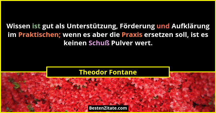 Wissen ist gut als Unterstützung, Förderung und Aufklärung im Praktischen; wenn es aber die Praxis ersetzen soll, ist es keinen Schuß Pulver wert.
