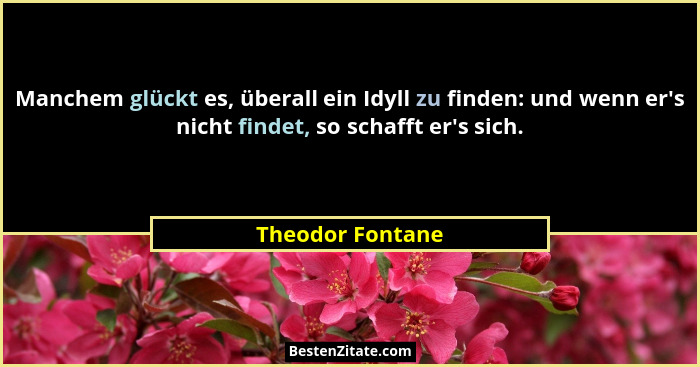 Manchem glückt es, überall ein Idyll zu finden: und wenn er's nicht findet, so schafft er's sich.