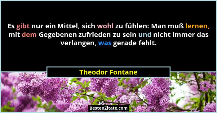 Es gibt nur ein Mittel, sich wohl zu fühlen: Man muß lernen, mit dem Gegebenen zufrieden zu sein und nicht immer das verlangen, was gerade fehlt.