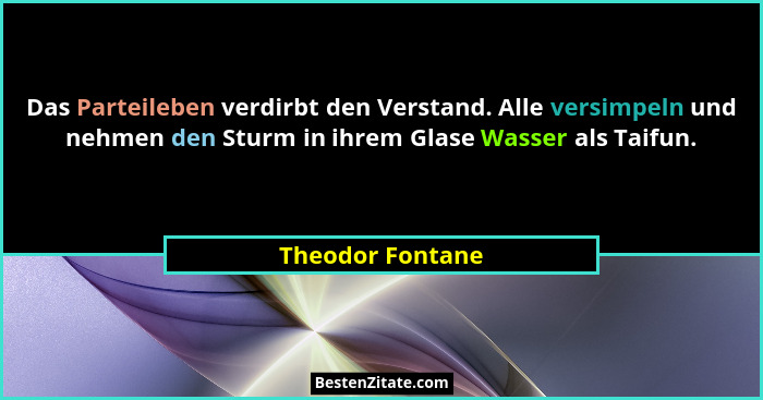 Das Parteileben verdirbt den Verstand. Alle versimpeln und nehmen den Sturm in ihrem Glase Wasser als Taifun.
