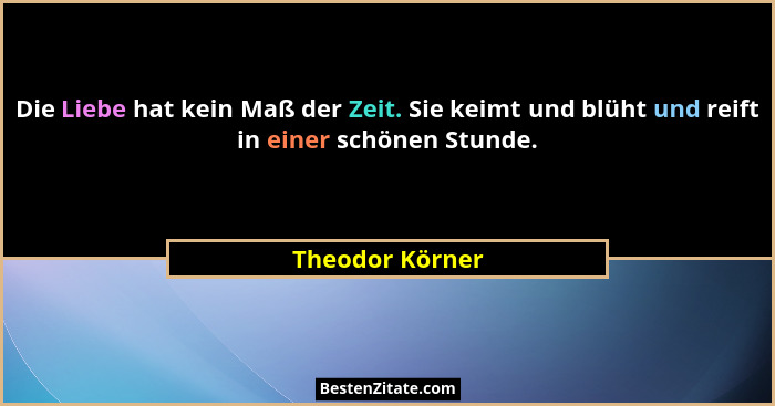 Die Liebe hat kein Maß der Zeit. Sie keimt und blüht und reift in einer schönen Stunde.