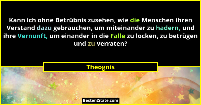 Kann ich ohne Betrübnis zusehen, wie die Menschen ihren Verstand dazu gebrauchen, um miteinander zu hadern, und ihre Vernunft, um einander in die Falle zu locken, zu betrügen und zu verraten?