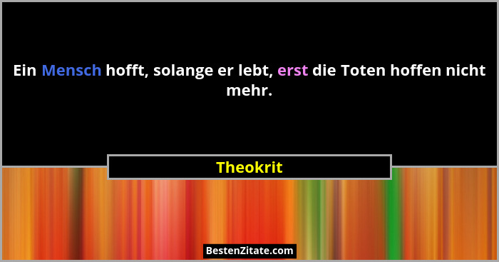 Ein Mensch hofft, solange er lebt, erst die Toten hoffen nicht mehr.