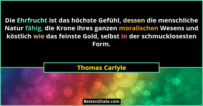 Die Ehrfrucht ist das höchste Gefühl, dessen die menschliche Natur fähig, die Krone ihres ganzen moralischen Wesens und köstlich wie das feinste Gold, selbst in der schmucklosesten Form.