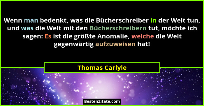 Wenn man bedenkt, was die Bücherschreiber in der Welt tun, und was die Welt mit den Bücherschreibern tut, möchte ich sagen: Es ist die größte Anomalie, welche die Welt gegenwärtig aufzuweisen hat!